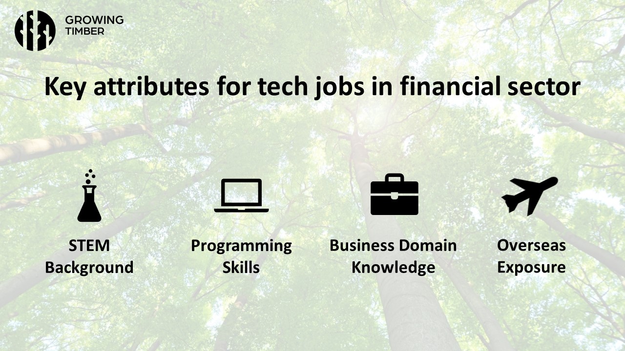 - In financial services, tech professionals are expected to have business domain knowledge, to better support business needs.